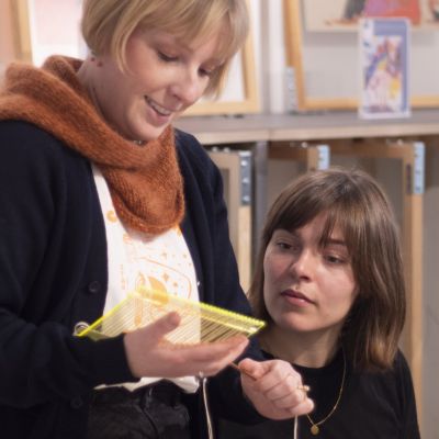 Anne-Sofie Overgaard er uddannet fra Det Jyske Kunstakademi og har gennem årene arbejdet med billede- og installationskunst med udstillinger i både Danmark, Norge og Tyskland. I sin praksis har hun ‘genopdaget’ væven og arbejder med de øjeblikke, minder og billeder, vi kan genbesøge og forlænge i vævningen.